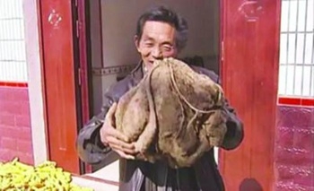 這么稀奇的山芋惹得村民們都來看?匆娺@么多人前來圍觀,王敬好從家中找出一稈秤,現(xiàn)場稱起了這個大山芋,竟然有27斤半!王大爺說,山芋地里沒有上任何化肥,同一塊地,其他山芋最多一兩斤,只有這個超級大。
