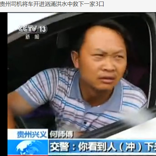 關(guān)鍵時(shí)刻果斷出手的司機(jī)名叫何安明,今年38歲,家住黔西南州義龍?jiān)囼?yàn)區(qū)頂效鎮(zhèn)馬別社區(qū)。 當(dāng)天上午,何安明的妻子準(zhǔn)備到興義市上班,但是考慮到下雨后路面水多,她不敢獨(dú)自開車。何安明就開車將妻子送到單位后返回頂效鎮(zhèn)。 返程途中,盤山公路上的洪水越來越大,何安明無奈在半山腰上等待了一個(gè)多小時(shí)。快12點(diǎn)時(shí),考慮到家中6歲多的孩子獨(dú)自在家,何安明決定調(diào)頭走另外一條路。 當(dāng)他剛把車倒好,正在觀察路況時(shí),忽然看到盤山公路上方的洪水中卷著兩個(gè)孩子和一名婦女,后面一名交警正在追趕。其間,交警已經(jīng)用手拉住了婦女,但洪水沖力太大,沒能抓住。 “當(dāng)時(shí)可能只隔我五六米遠(yuǎn)了,三人沖下來的速度太快,目測不低于20碼!焙伟裁骰貞浾f,公路下面就是峽谷,眼看情況危急,他立即深踩一腳油門沖到洪流中,快撞到道牙時(shí),又猛然剎住。 車輛剛剎住兩秒,“砰”的一聲震動(dòng),三人就沖到了車下。 “沒什么比生命重要” “說不怕,我也怕。”談到開車救人的那一刻,何安明說,怕的不是自己,怕的是水下的幾個(gè)人!皼]有想什么車不車,車沒有人的生命值錢! 何安明說,車輛攔截下三人后,小男孩首先被救援的人救了起來,但小女孩和婦女則被沖到了車下。 “當(dāng)時(shí),我非常擔(dān)心底盤下的兩人嗆水后,會(huì)有生命危險(xiǎn)。”何安明說,隨后有人喊了一聲:“把車抬起來!敝車娜罕婟R心協(xié)力上前幫忙。經(jīng)過幾次嘗試并增加抬車的人,最終車被抬起,小女孩和婦女被救了出來。 當(dāng)時(shí),小女孩在掙扎,而婦女已經(jīng)昏迷。經(jīng)過人工呼吸,婦女終于蘇醒過來。 何安明說,年輕時(shí)做過泥水工、擺過地?cái)偂①u過菜,現(xiàn)在自己開了一個(gè)磚廠!笆鄽q的時(shí)候,我在興義五中上高中。一天在校外看到一位民警正在抓小偷,當(dāng)時(shí)我無動(dòng)于衷,看到小偷和民警就從自己身邊跑走。事后我一直很后悔,覺得自己當(dāng)時(shí)就應(yīng)該伸腳絆倒小偷的。” 何安明說,這一次,他做了自己該做的事。 洪水無情,人有情。滾滾洪流中,一股正能量的暖流托起生命。危難之中自見善惡,舍身涉險(xiǎn)彰顯大愛。司機(jī)富有智慧和冒險(xiǎn)精神的見義勇為,以及所有施以援手的好心人,共同構(gòu)成一幅抗險(xiǎn)救人的善行圖,讓我們感受到了溫暖和美好。 【參考文獻(xiàn)】:多彩貴州網(wǎng) |