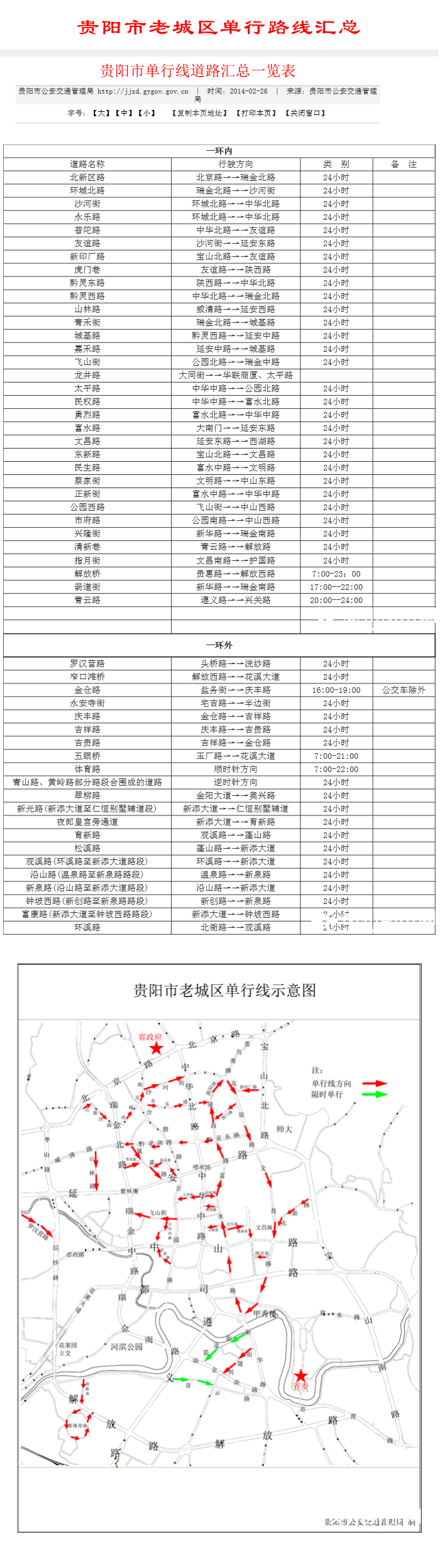 2月27日,貴陽(yáng)市公安交管局公布了貴陽(yáng)市目前已實(shí)施單向通行的道路匯總,目前貴陽(yáng)共54條道路單向通行,其中除箭道街、青云路等6條道路為分時(shí)段單向通行外,包括近期新增的北新區(qū)路、永樂路等在內(nèi)48條道路均是24小時(shí)單行。 據(jù)了解,隨著貴陽(yáng)城市交通壓力增大,為更好地滿足出行需求和城市軌道交通施工需要,貴陽(yáng)市分批次對(duì)相關(guān)道路交通組織方式進(jìn)行了必要的調(diào)整,部分道路實(shí)施了單向通行。此次該局將目前已實(shí)施單向通行的道路匯總,方便市民查閱,以便出行時(shí)駕駛員靈活利用單行道繞開施工道路和交通堵點(diǎn)。 附:《貴陽(yáng)市交警公布54條單行道示意圖》 【參考文獻(xiàn)】:貴陽(yáng)市公安交管局 【相關(guān)附件】: ![]() |